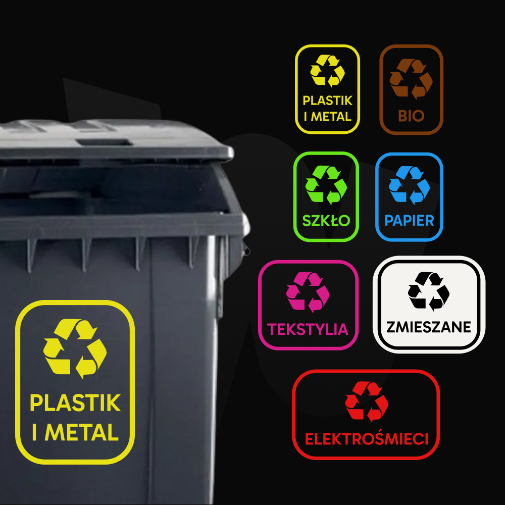 Bio, Elektro, Papier, Plastik, Szkło, Tekstylia, Zmieszane