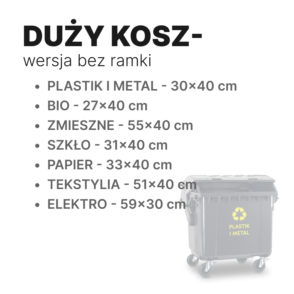 Naklejki na kosz — Specyfikacja