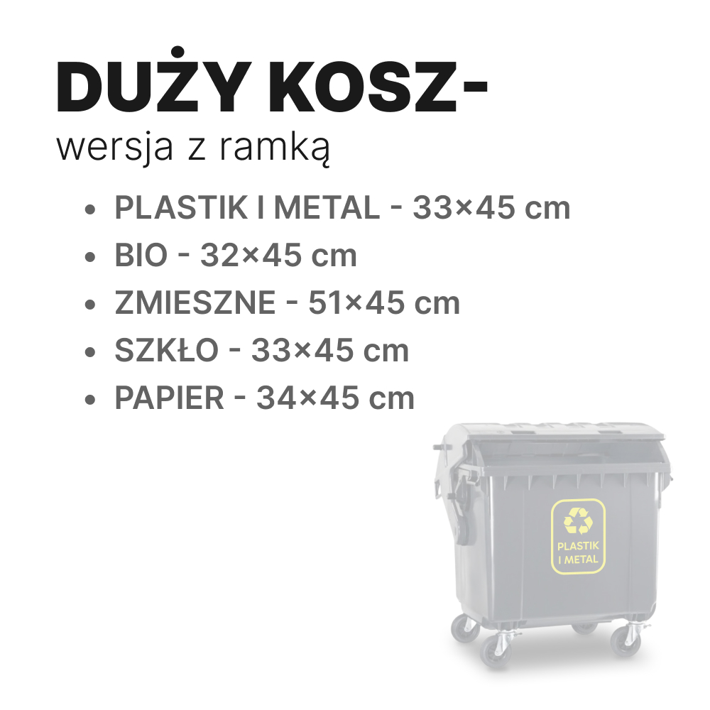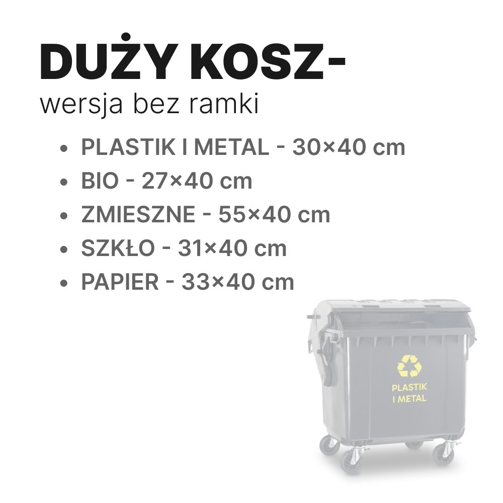 Dodatkowo materiał jest wodoodporny i trwały, więc świetnie sprawdzi się zarówno na małych domowych koszach, jak i na dużych pojemnikach osiedlowych czy koszach stojących na posesjach. To niewielki detal, który robi dużą różnicę, ponieważ ułatwia codzienną segregację odpadów.