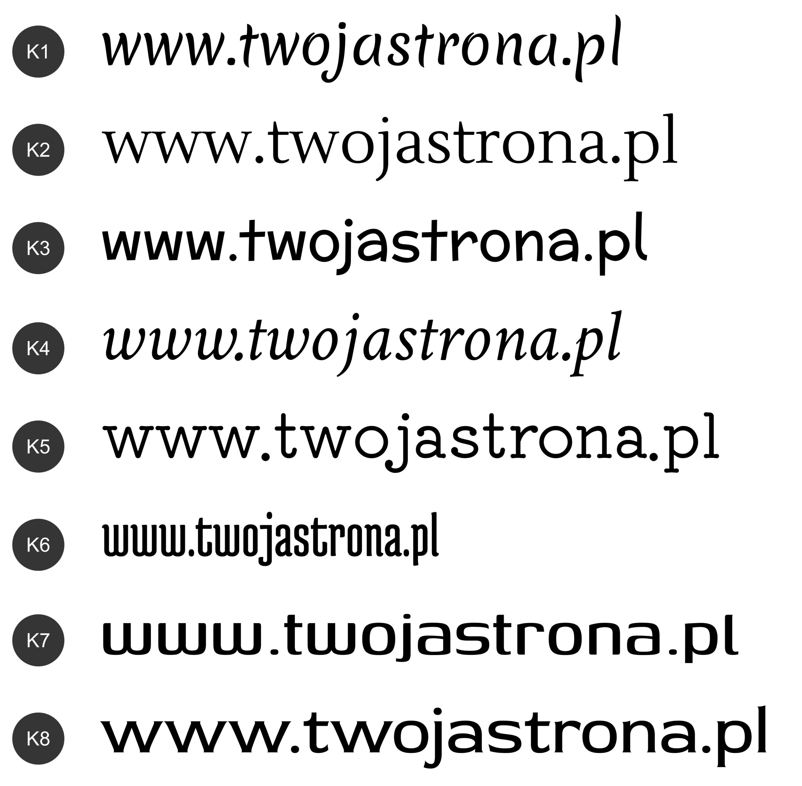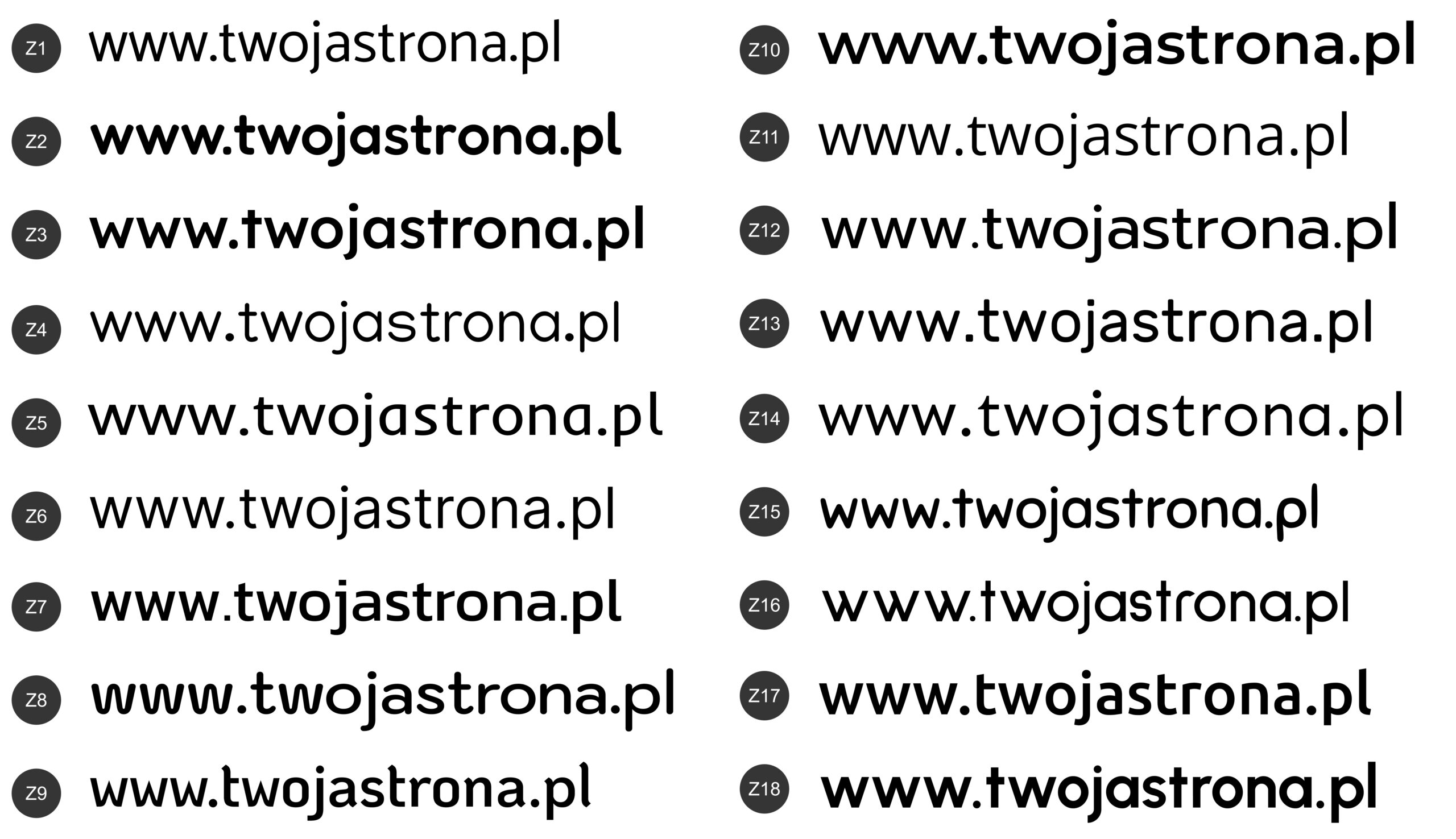 Do wyboru masz różne kolory i czcionki, które dopasujesz do stylu swojej identyfikacji. Naklejke wycinamy ploterowo z folii Oracal 551, dlatego jest odporna na warunki atmosferyczne i zachowuje czytelność na lata.