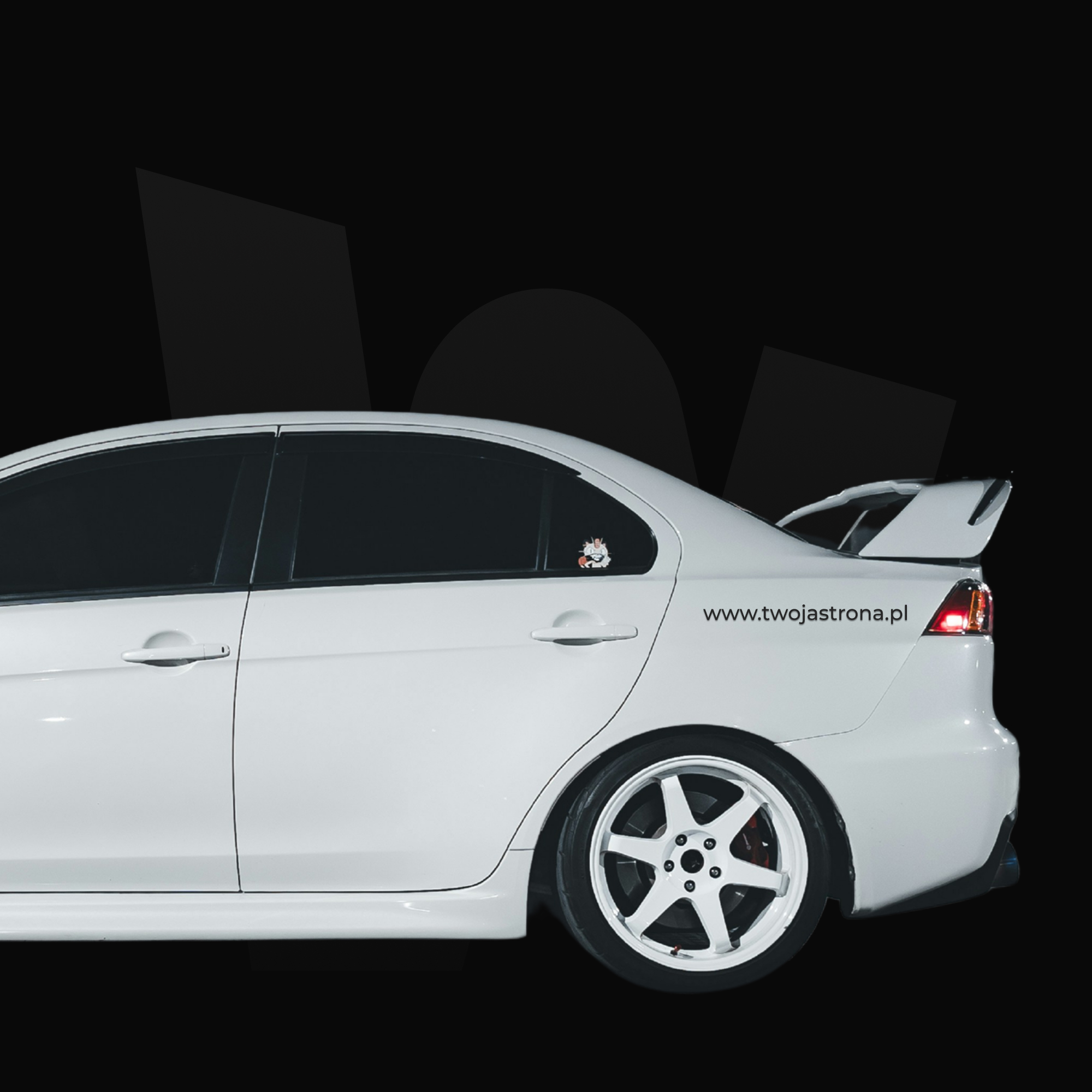 Domyślnie, oferowana naklejka przeznaczona jest do naklejenia na wierzch auta lub szyby.