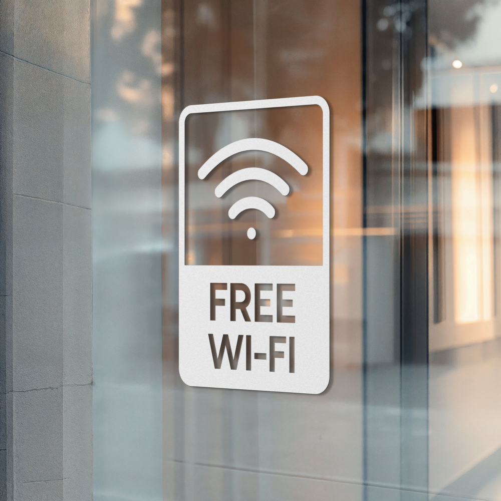 Naklejka Free wi-fi to czytelne oznaczenie witryny, które od progu mówi jedno: u nas możesz zostać dłużej. Bez nerwowego szukania zasięgu i bez pytania obsługi. W efekcie klient wie, że kawa, tatuaż czy konsultacja mogą potrwać, a internet nie wyparuje po pięciu minutach 😉