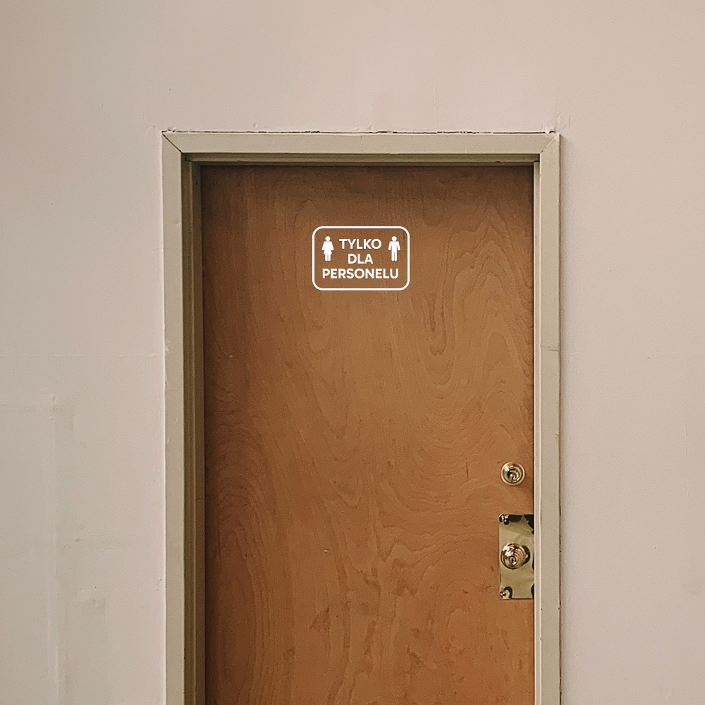 Naklejka sprawdza się w wielu miejscach, ponieważ dostępne są różne warianty i układy! Możesz użyć jej na drzwiach toalety pracowniczej, przy przejściu służbowym, na zapleczu lokalu, a także w magazynie czy biurze. Dzięki uniwersalnym wzorom łatwo dopasujesz ją do konkretnego zastosowania i charakteru wnętrza.