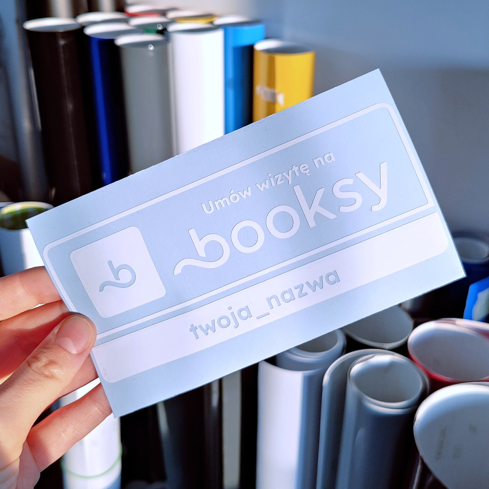 Naklejka Umów wizytę na Booksy to personalizowana forma reklamy dla biznesów, które chcą być widoczne zarówno offline, jak i online.
