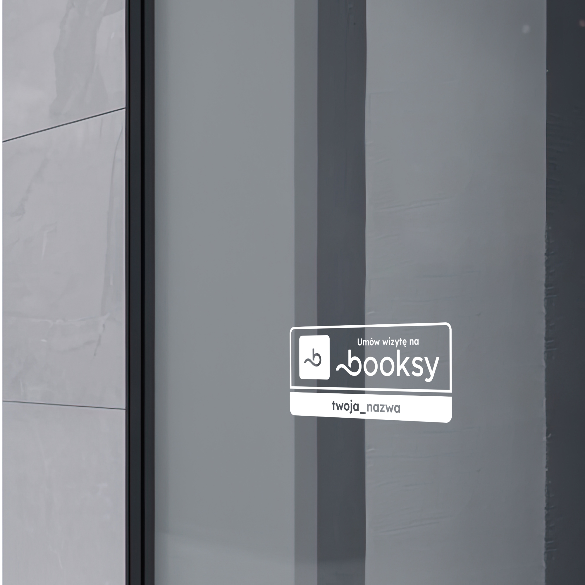Naklejka Umów wizytę na Booksy działa jak cicha, ale skuteczna reklama, ponieważ łączy realną przestrzeń z Twoją obecnością online.