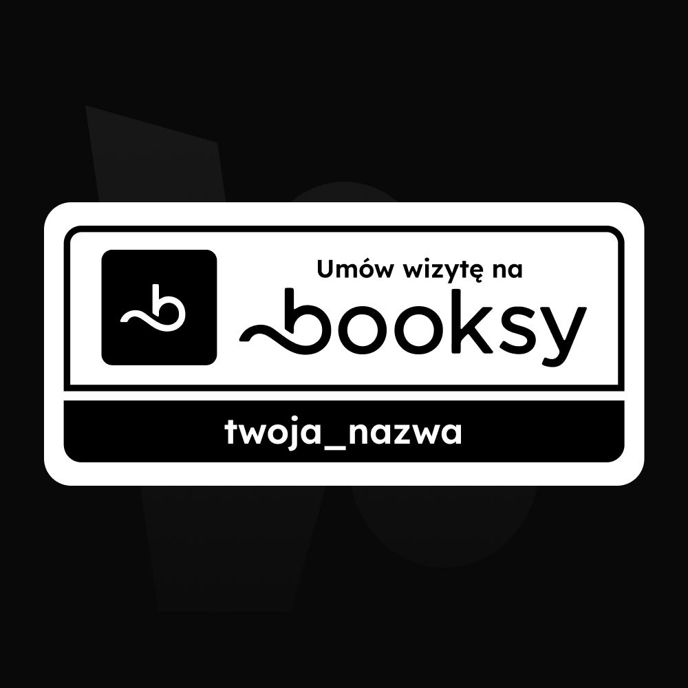 Naklejka Umów wizyte na Booksy działa jak cicha, ale skuteczna reklama, ponieważ łączy realną przestrzeń z Twoją obecnością online.