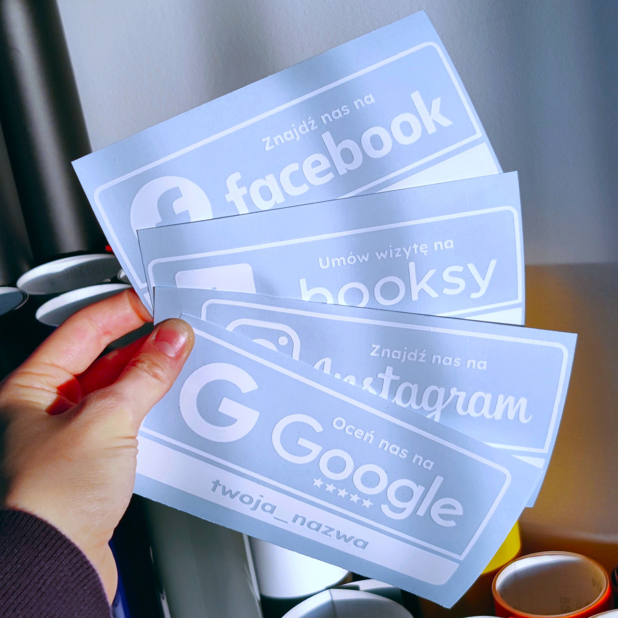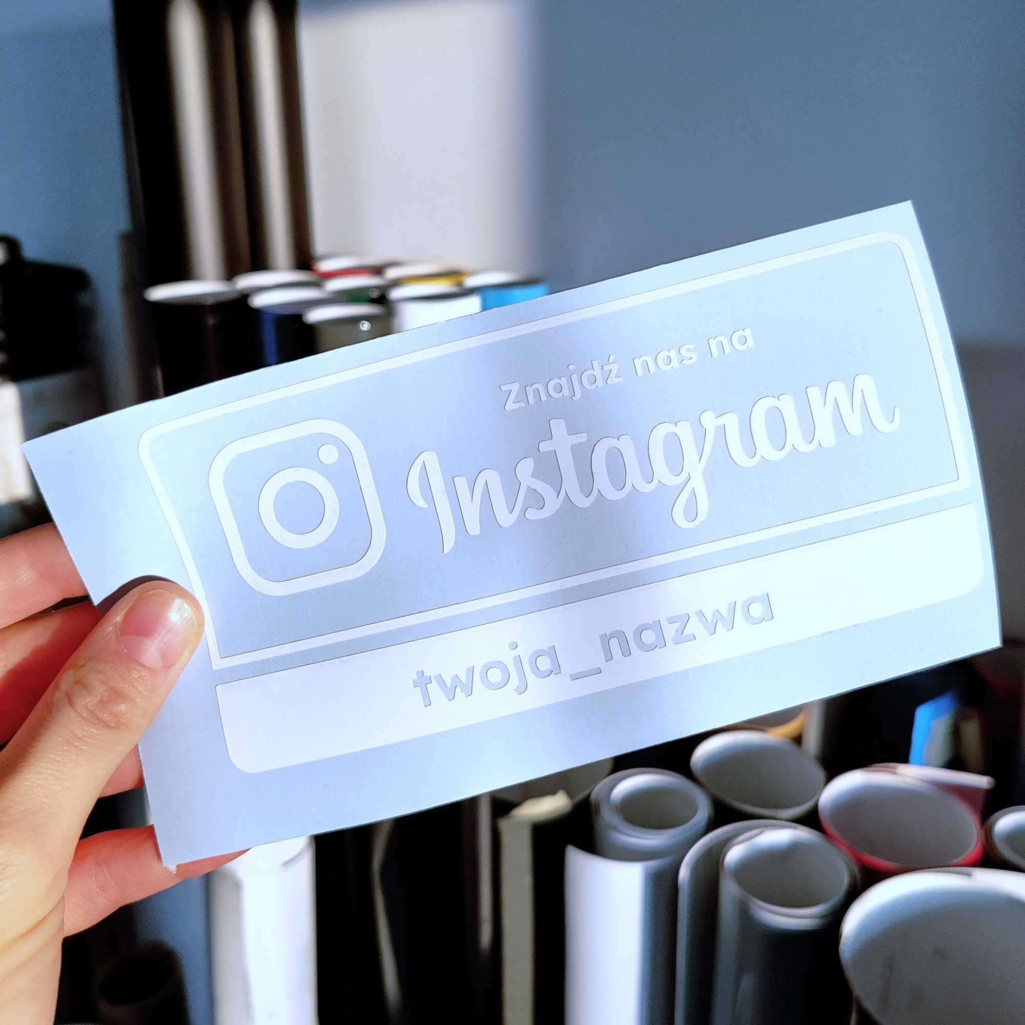 Na naklejce umieszczamy nazwę Twojego profilu, dlatego klient od razu wie, gdzie może Cię znaleźć i kogo obserwować.